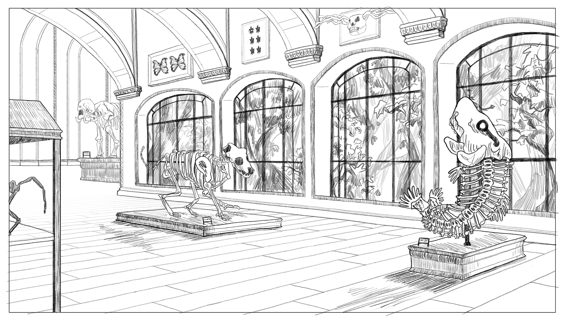 backgrounds for a sample episode set in a natural history museum